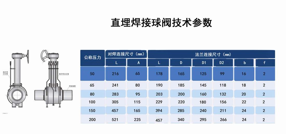 進(jìn)口長桿直埋式全焊接球閥技術(shù)參數(shù)