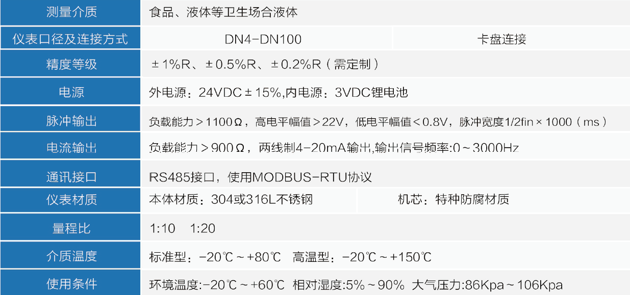 進(jìn)口衛(wèi)生級(jí)渦輪流量計(jì)技術(shù)參數(shù)
