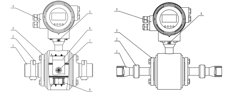 4.轉(zhuǎn)換器 5.接地螺釘 6.磁路板 7.電極 8 勵(lì)磁線圈