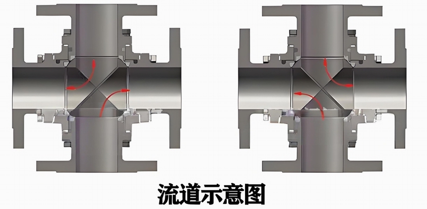 進口四通法蘭球閥的流道示意圖