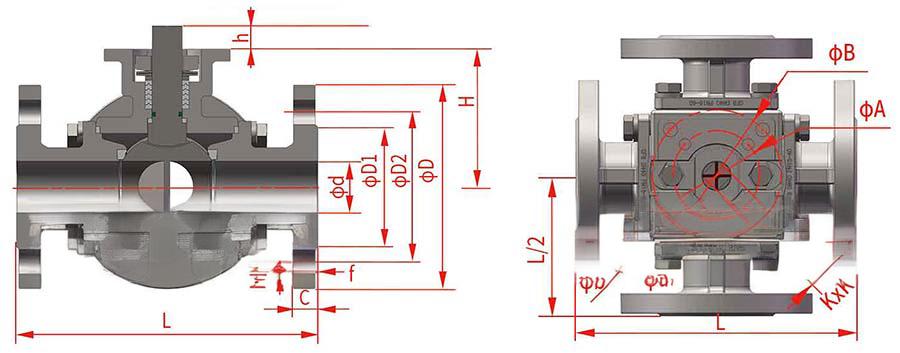 進口四通法蘭球閥的外形尺寸和連接尺寸